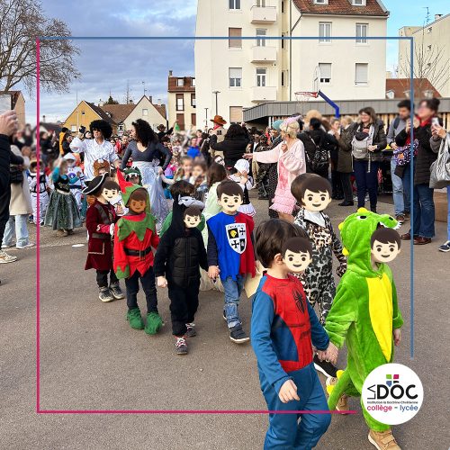 - Le collège/lycée a organisé un concours de déguisements par classe. Les élèves pouvaient imaginer une mise en scène autour d’un thème, ou non, pour défiler devant un jury. Tous ont été créatifs, une classe s’est transformée en équipe de foot avec commentateurs lors de la victoire de la coupe du monde de foot, d’autres ont imaginé la sélection des anges et des diables dans le ciel, une classe s’est transformée en ring de boxe pour accueillir un combat de tyrannosaures et bien plus encore. Bravo à tous les élèves pour leur imagination et leur participation.