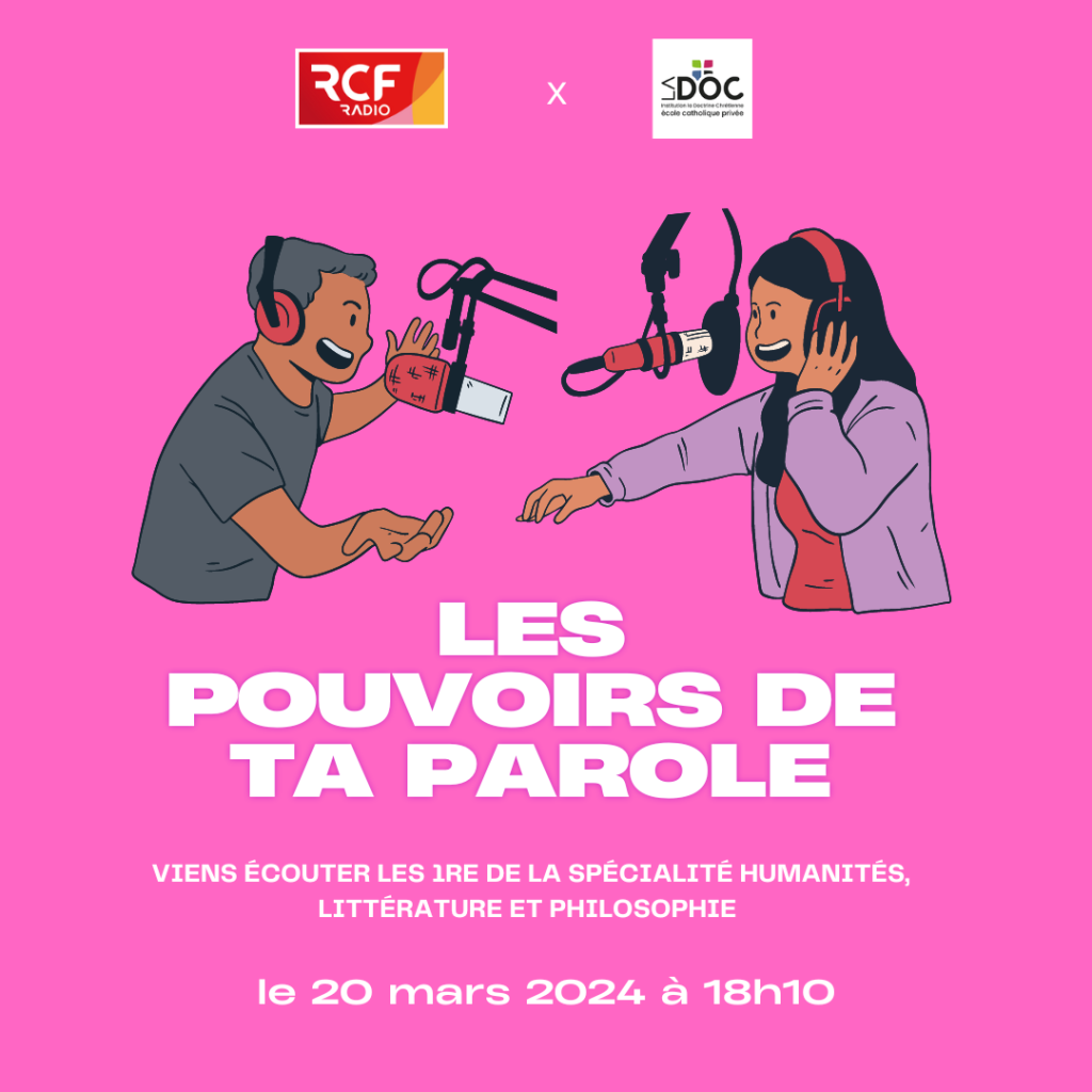 Mercredi 20 mars, des élèves de première option HLP, enregistrerons, en direct, une émission radio au sein de l’établissement ! En effet, la radio RCF, viendra s’installer à la Doc pour une émission spéciale, rédigée par les élèves eux-mêmes. L’émission s’écoutera depuis la web radio RCF Alsace de 18h00 à 19h00 et sera également disponible en podcast après la diffusion.